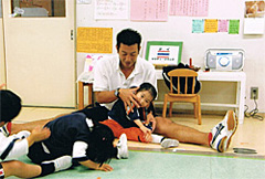 みんなで元気に歌を歌い、出席をとり、今日の日付、天気の確認、絵本の読み聞かせ、今日の活動予定などをきちんと座って聞きます。